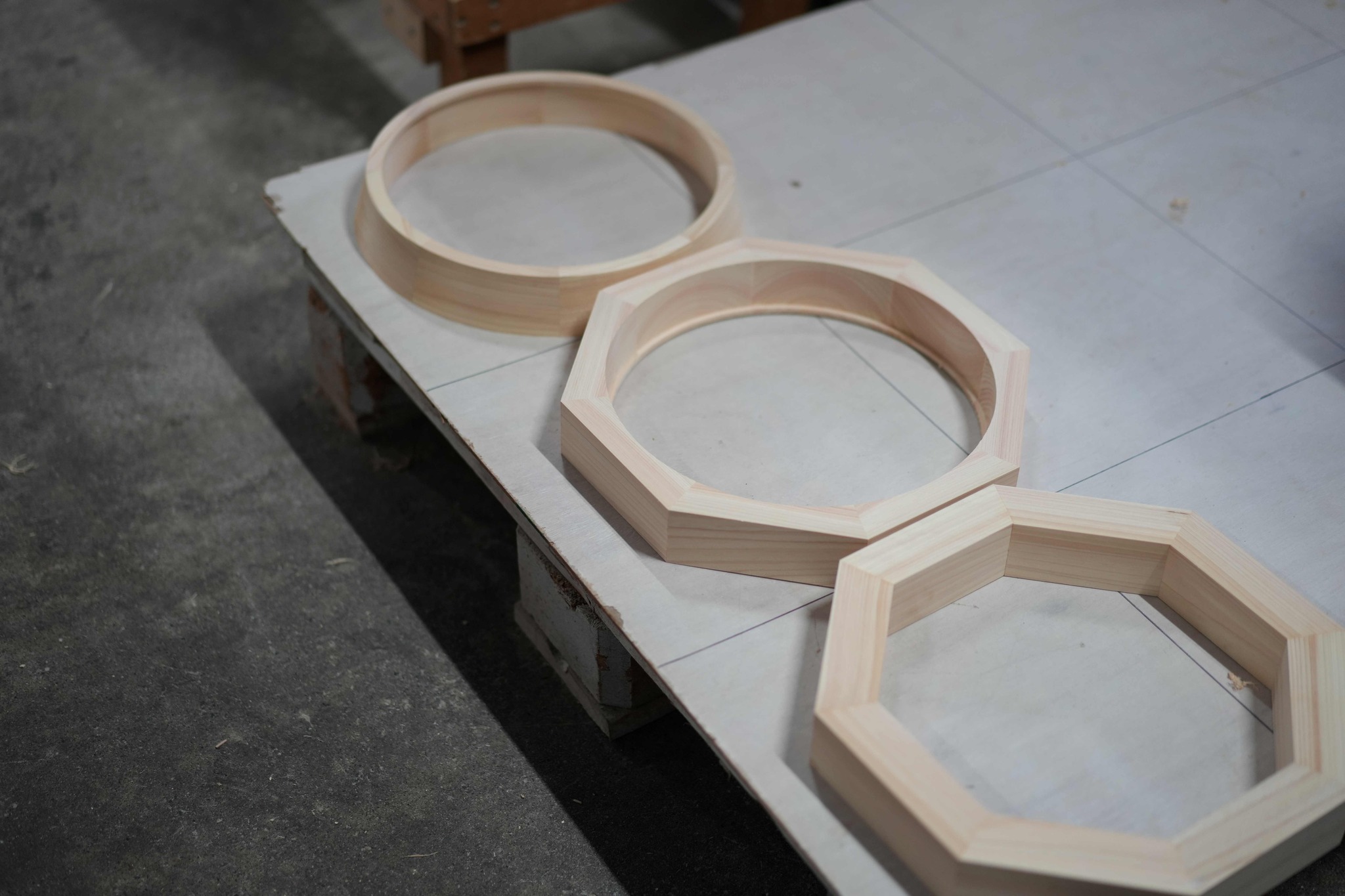 この木材たちが職人さんたちの丁寧な作業によって、美しい円形に仕上げられていきます。