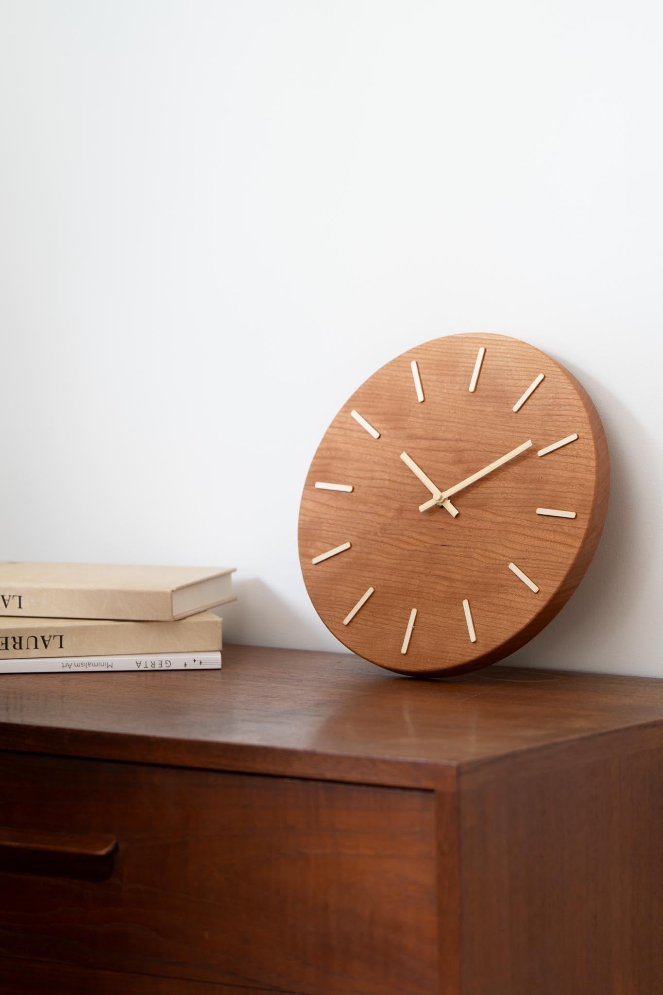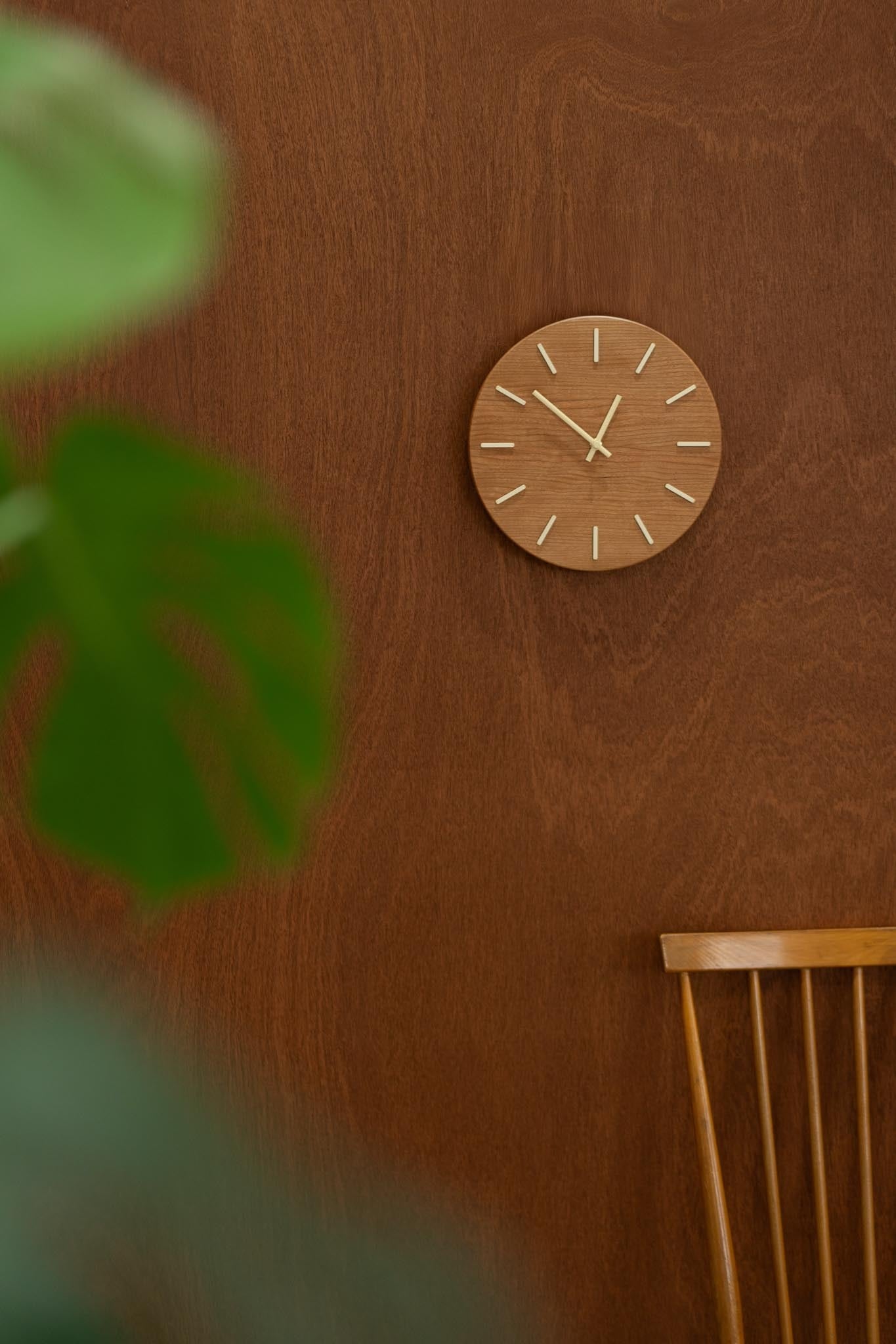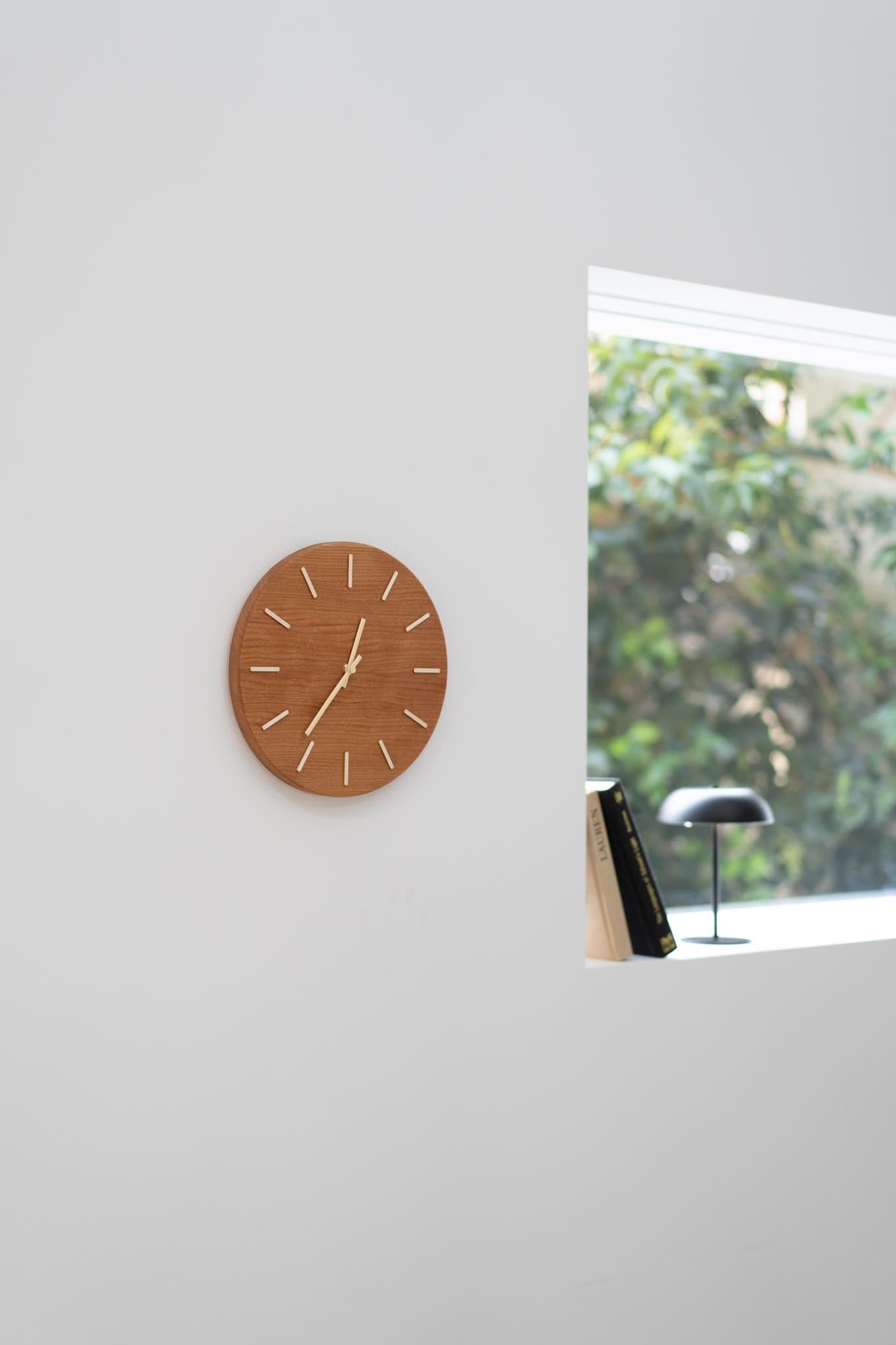 静謐な佇まいの中に品格あるアクセントを忍ばせ、天然木の豊かな表情が時計の顔として静かに際立ちます。