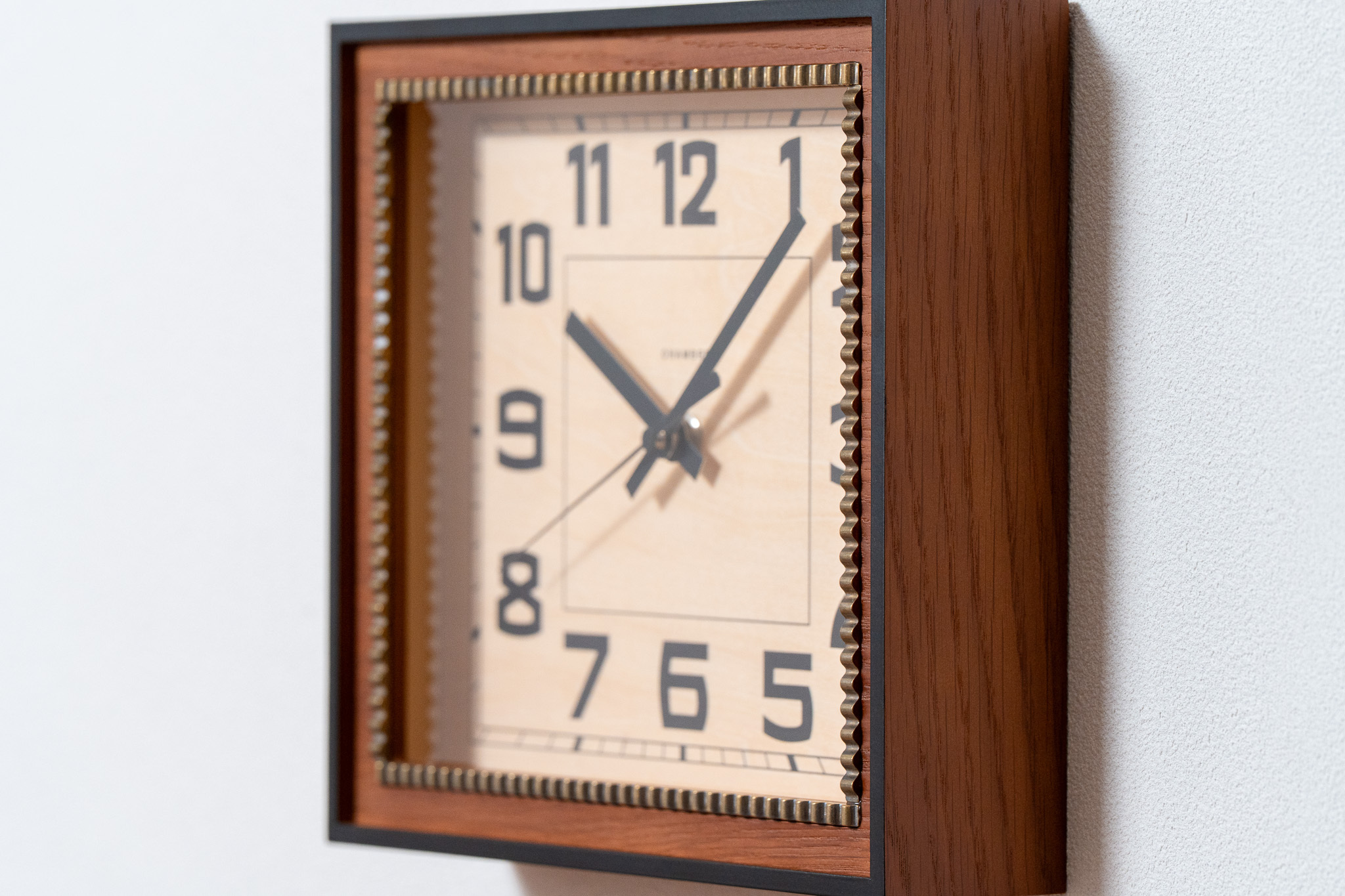 [素 材]フレーム:MDF・オーク突板・真鍮 / 文字盤:シナ材 / 風防:アクリル