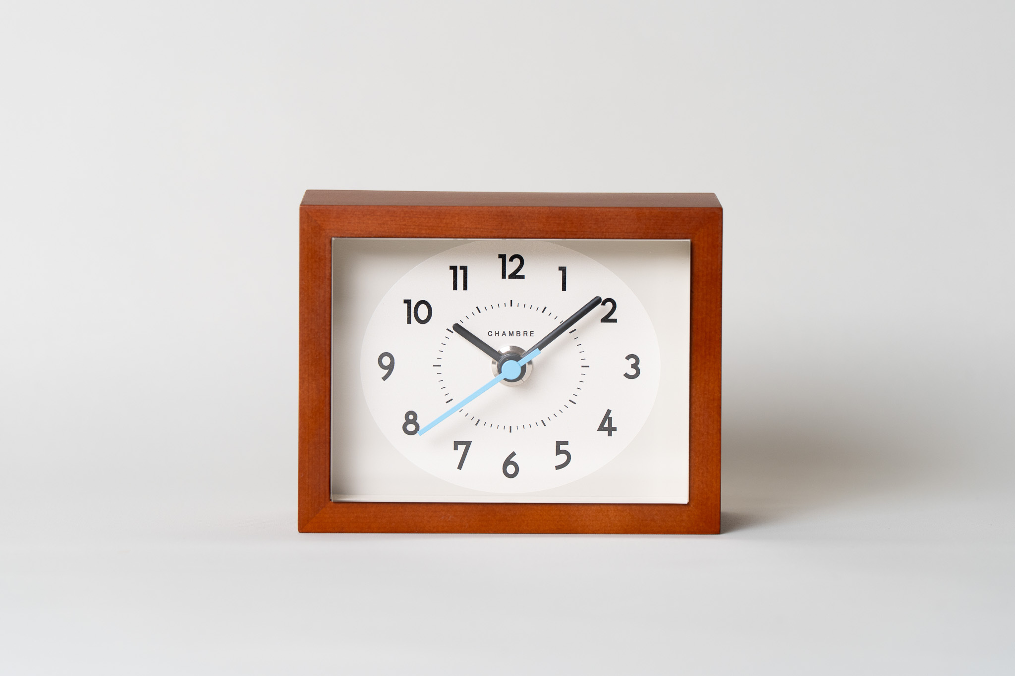 デンマークのビンテージ家具をイメージしたカフェブラウンは、水色秒針がアクセント。遊び心を感じます。