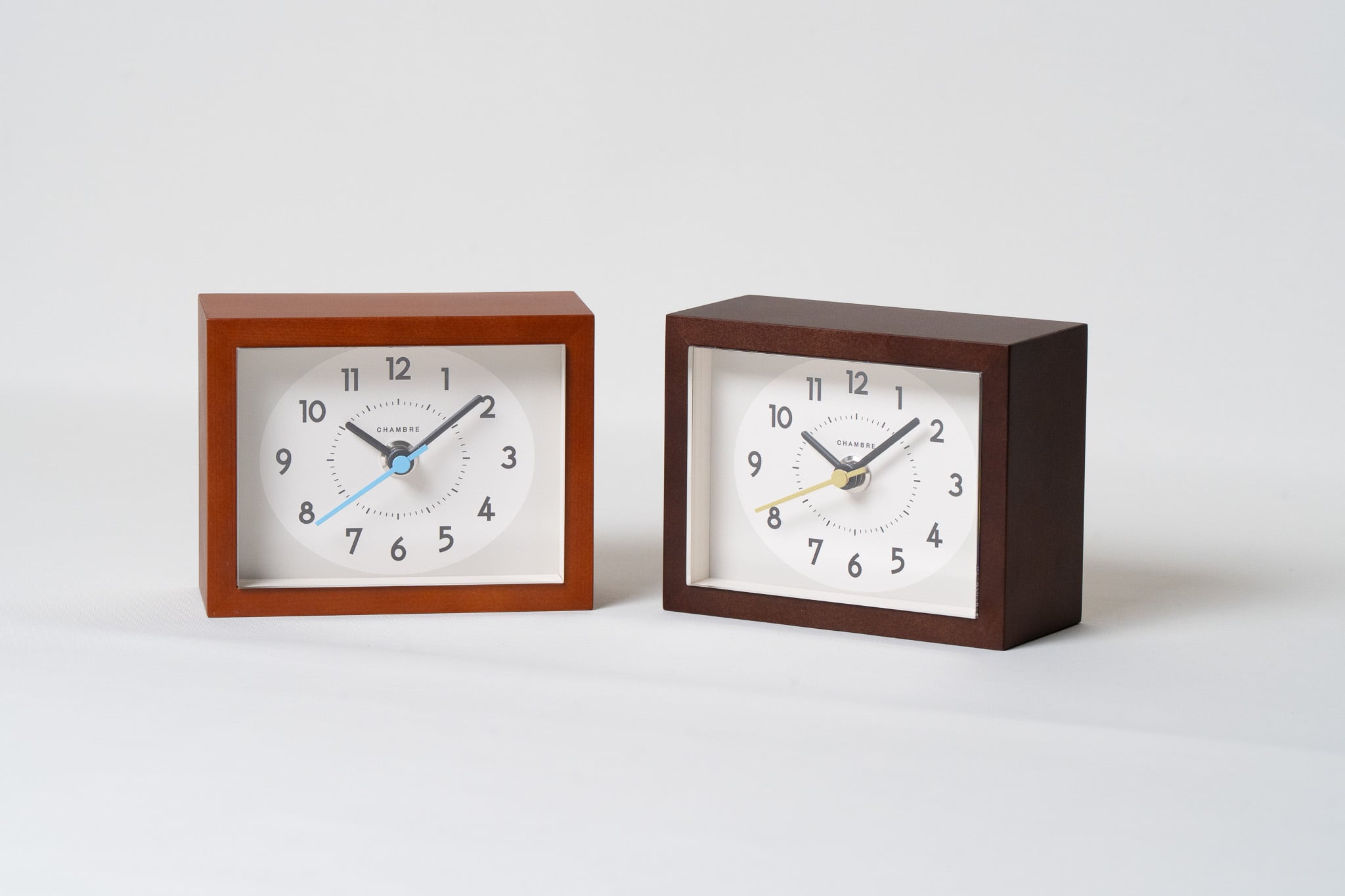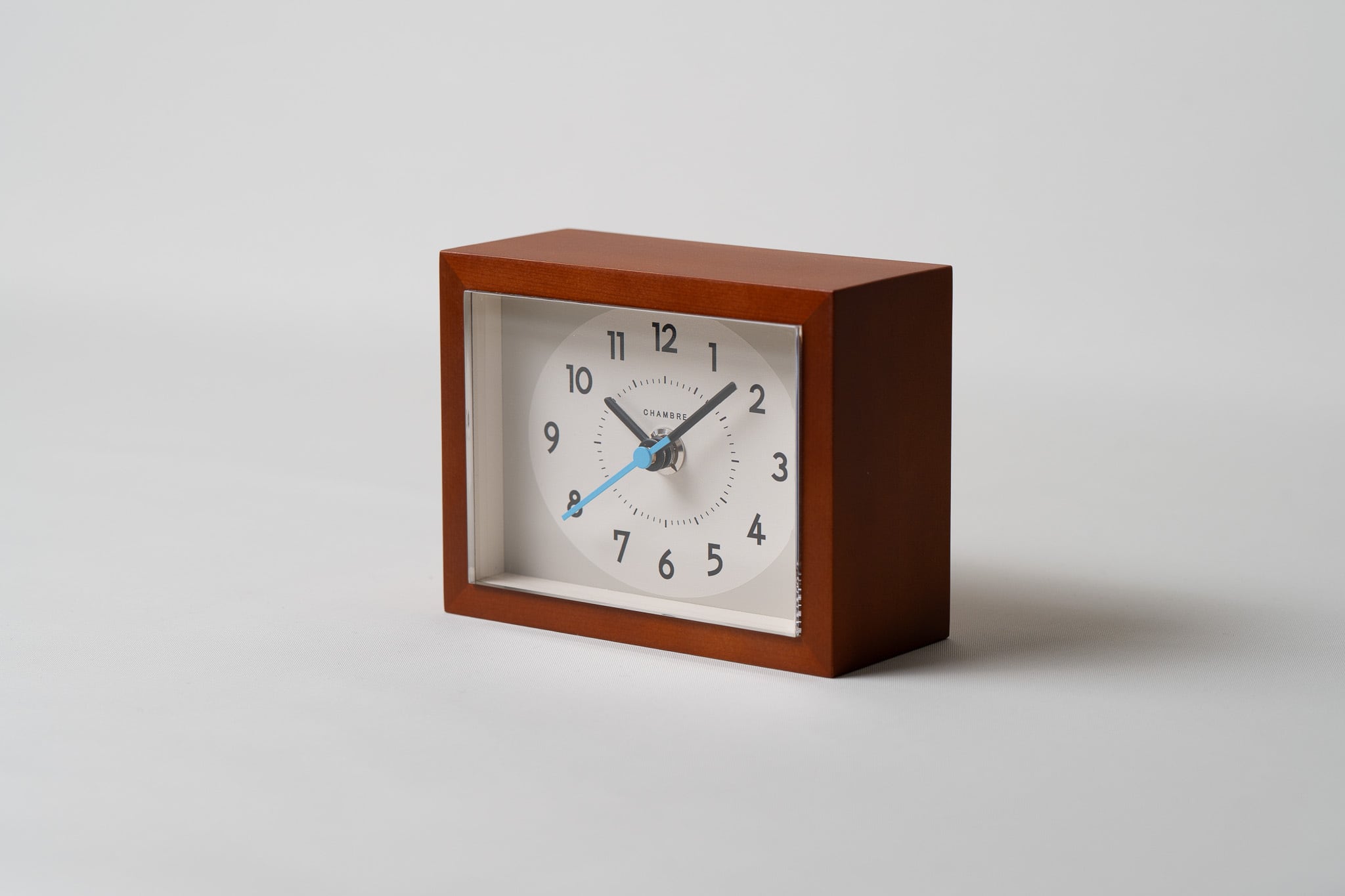デンマークのビンテージ家具をイメージした〈CAFE BROWN〉は、水色秒針に遊び心を感じます。